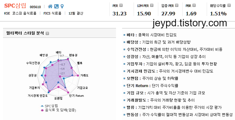 - 변동성 : 주가 수익률의 절대적 변동성과 시장대비 상대적 변동성
