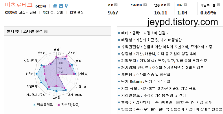 - 베타 : 종목의 시장대비 민감도