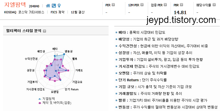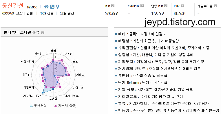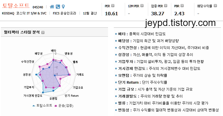 - 변동성 : 주가 수익률의 절대적 변동성과 시장대비 상대적 변동성