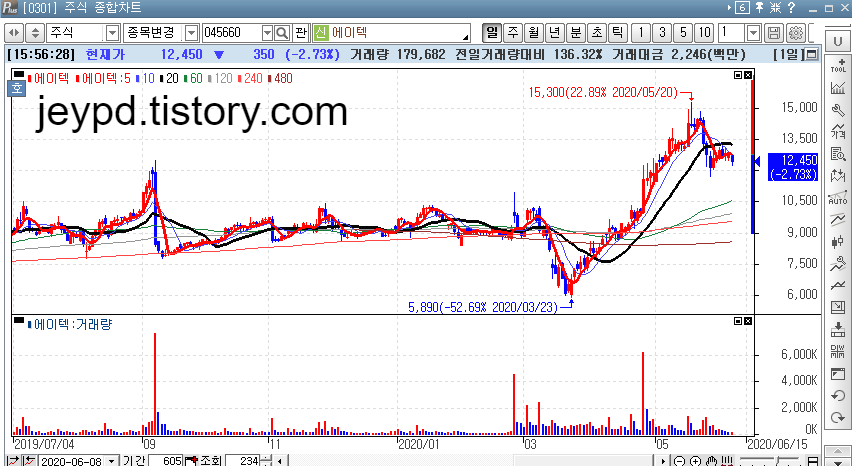 에이텍 주가가 오른다면 에이텍티엔도 같이 따라갈 확률이 높고, 반대로 끌고 갈 수도 있습니다.