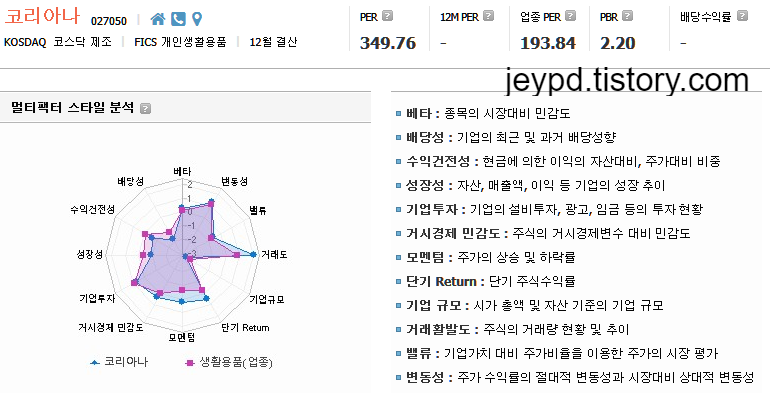 - 변동성 : 주가 수익률의 절대적 변동성과 시장대비 상대적 변동성