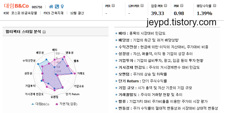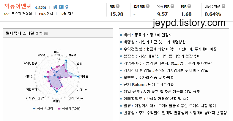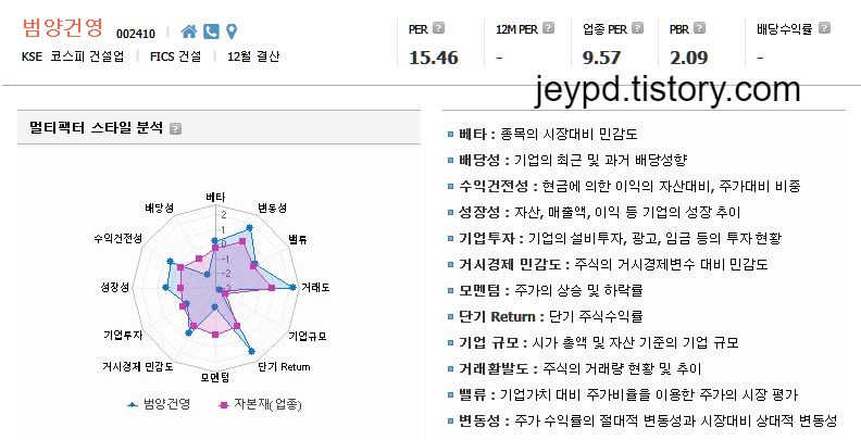 - 변동성 : 주가 수익률의 절대적 변동성과 시장대비 상대적 변동성